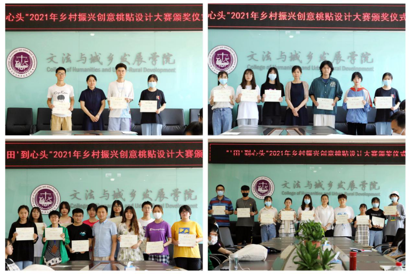 2021年6月30日,由校团委联和永利yl23411官网举办的“‘田’到心头”乡村振兴创意桃贴设计大赛颁奖仪式在文发楼322室举行。永利yl23411官网院长韩芳、副书记副院长李云乐、农村区域发展系主任苟天来、指导老师常丽红、团委书记周旭平出席活动,各位获奖同学参加了本次活动。